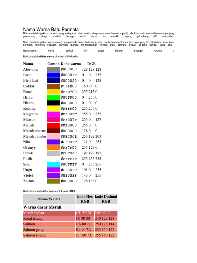 1001 Kode Warna Css Dan Html Lengkap Full Color Ponseli Com