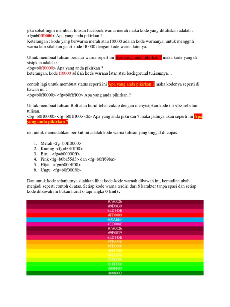 Cara Membuat Status Fb Berwarna Dengan Kode Tulisan Warna